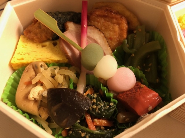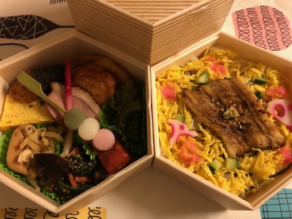 桜の様なピンクを基調としてお弁当。
